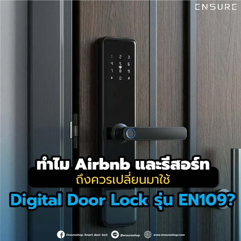 การเปลี่ยนมาใช้ Digital Door Lock รุ่น EN109 คือการก้าวข้ามขีดจำกัดเดิมๆ ของการทำธุรกิจที่พัก เป็นการมอบเทคโนโลยีที่ช่วยให้ชีวิตเจ้าของง่ายขึ้นและแขกแฮปปี้กว่าเดิม ด้วยความสามารถในการบริหารจัดการผ่านแอปพลิเคชัน TTHotel ที่เป๊ะและเสถียร การรองรับทั้งคีย์การ์ดและรหัสผ่านที่กำหนดเวลาได้ รวมถึงวัสดุที่แข็งแกร่งทนทานต่อการใช้งานหนัก ทำให้ EN109 เป็นคำตอบที่ “ใช่” ที่สุดสำหรับคนทำ Airbnb และรีสอร์ทในยุคนี้ หากคุณต้องการยกระดับที่พักของคุณให้เป็น Smart Hotel ที่มีความมืออาชีพและปลอดภัยสูงสุด การเริ่มต้นที่ประตูคือการเริ่มต้นที่ถูกต้องที่สุด ซึ่ง Ensure Shop พร้อมดูแลและให้คำปรึกษาตลอดการใช้งานเพื่อให้ธุรกิจของคุณเติบโตได้อย่างมั่นคงและยั่งยืนในยุคดิจิทัลนี้